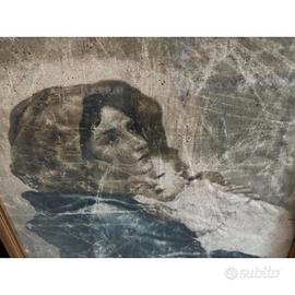 QUADRO IMMAGINE SACRA MADONNA CON BAMBINO TELA STAMPATA EPOCA (ROTTURA ANGOLO VETRO) MISURE 50 X 74 CM