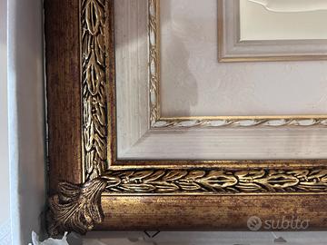 • Cornice in legno lavorato e dorato, con finiture di pregio