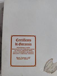 Bellissimo quadro 13,5X15,5 cm in argento 999% con cornice di legno e certificato di garanzia originale