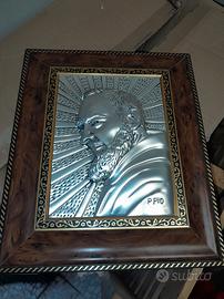 vendo bellissimo quadro in argento con immagine di padre Pio, cornice in legno pieno, ottima qualità, misure come in foto