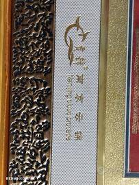Il tessuto è incorniciato con cornice decorativa dorata in stile orientale, solida e di grande impatto visivo.