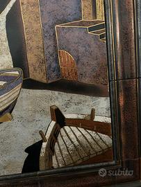 Qudro in ceramica lastra unica con cornice in ceramica, smalti preziosi, lustri e oro zecchino. Misura 79x99