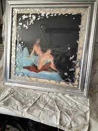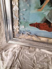 Ottimo quadro in foglia d' argento con mis.70x70 pittura ad olio buona cornice in legno rivestita in foglia d' argento con rilievo sul vetro, idea originale per un regalo,con firma dell' autore.