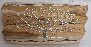 Quadro in legno Albero della Vita Misura cm.92xcm.44 xcm.7 Struttura bombata ( curca) non lineare Struttura in Legno con vari assi assemblate Disegno Albero della Vita in rilevo con Foglia Argento