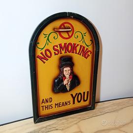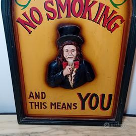 Quadro in legno No Smoking, ottimo come complemento d'arredo per locali o taverne private. Buone condizioni generali, qualche segno dell'utilizzo.