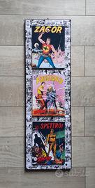 Abbiamo lavorato il legno e le immagini in modo da creare un degno omaggio a Zagor e a tre dei suoi fumetti più rappresentativi.