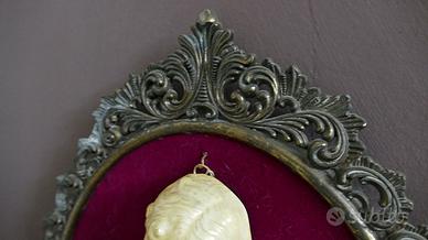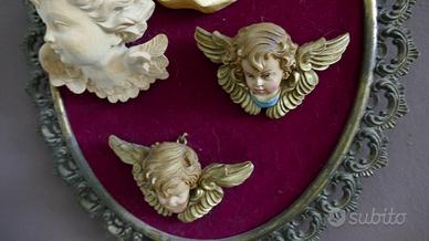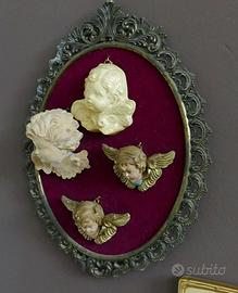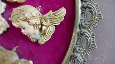 Quadro in ottone con angioletti (aggiunti da me), sfondo di velluto rosso, bella arreda subito una parete, altezza 40 cm.