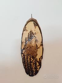 fetta di legno con Pirografia a mano di un lupo. cm 29x11