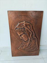 quadro in rame sbalzato a mano raffigurante la Madonna fatto a mano misure 60 cm x 40 cm