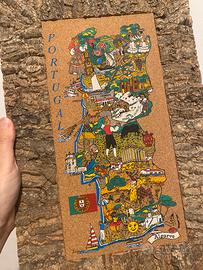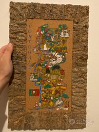 Bellissimo quadro decorativo raffigurante una mappa illustrata del Portogallo, con dettagli colorati e simboli tipici delle regioni. Realizzato su base in sughero con cornice in vera corteccia, perfetto per amanti del Portogallo, dell’artigianato o dello stile rustico/vintage.
