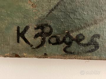 Olio su tela con supporto originale, a firma KPages(artista sconosciuto). Il dipinto di dimensioni 130*190 risale alla prima metà del Novecento, cubista, realizzato da autore spagnolo/francese.