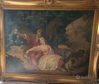 J.Michael Schmitt opera del 1938 (vedi foto); Paesaggio romantico con cielo suggestivo nella cornice barocca originale venduta con l'opera, firmato in basso a sinistra. Dipinto suggestivo nello stile tipico della Scuola di Monaco. Vedi foto. Le dimensioni sono di 110 cm x 83 cm (135 cm x 105 cm con cornice). Ottime condizioni originali. Stadelhofer sono stati offerti e venduti in diverse gallerie e aste a 1.800-2.400 euro. La cornice dell'opera è da ritenersi "omaggio".