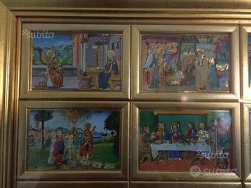 In un solo quadro, dodici antiche miniature, tratte dal Codice De Predis (1476) della Biblioteca Reale di Torino, formano in sintesi la Vita di Gesù per immagini. Le miniature sono decorate in oro zecchino e narrano le tappe fondamentali del Vangelo: l'Annunciazione, la Natività, la Visita dei Magi, il Battesimo, le Nozze di Cana, la Resurrezione di Lazzaro, l'Ultima Cena, l'Agonia di Gesù, la Via Crucis, la Crocifissione, la Resurrezione e l'Ascensione al Cielo di Cristo.