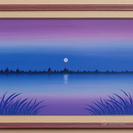 “Laguna Blu” non è solo un quadro, è una porta verso un momento di riflessione e serenità. Quest’opera dell’Artista Eugenia Tabellione, un acrilico su tela di 50x70 cm, vi guiderà in un viaggio interiore, dove il gioco di colori tra il violetto e l’azzurro accompagna lo sguardo in un paesaggio che invita alla calma e alla contemplazione.