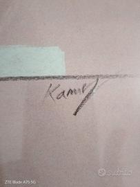 Kamy è noto per le sue opere astratte e la tecnica mista che combina inchiostro, acrilico e oli, caratterizzate da forme audaci.