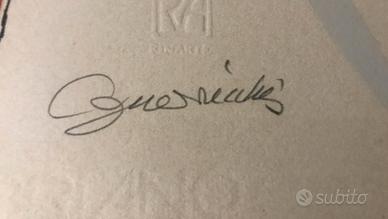 Quadro con Litografia del pittore Guerricchio su cartoncino Fabriano, misure del quadro 62X81,5 N.B La lettera "M" su una litografia generalmente indica "multiplo d'autore", cioè una stampa in tiratura limitata creata da un'unica matrice originale. La matrice viene poi distrutta per impedire ulteriori stampe. In altre parole, "M" segnala che la litografia è un'opera d'arte stampata in edizione limitata, non un singolo originale. Multiplo d'autore: Si riferisce a stampe realizzate in edizione limitata, derivate da una matrice originale dell'artista.