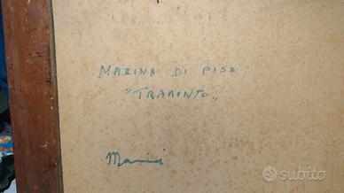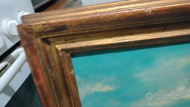 cornice antica con quadro acquerello del pittore Mannini , titolo del quadro tramonto marina di pisa misure 100 cm x 78 cm