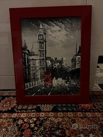 Quadro raffigurante Londra, su tela con cornice rossa. Misure: altezza 51cm Larghezza 40,5cm