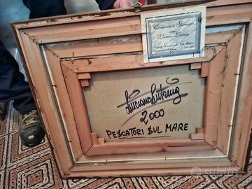quadro Luciano lutring il solista del mitra. pescatori sul mare con certificato garanzia olio su tela