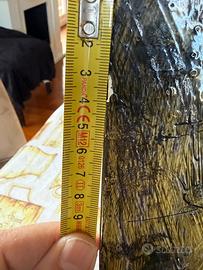 Dipinto del pittore contemporaneo italiano Luigi Recchi (Norcia 1943), formato 38x20 cm. Raffigura un cuore astratto dai colori caldi su uno sfondo scuro. Il telaio riporta la firma dell'autore e l'etichetta della Galleria Editrice Latina di Roma. Come visibile dalle foto l'opera presenta un leggero difetto sul lato sinistro (un piccolo pezzetto di vernice staccato). A disposizione per altre foto o informazioni.