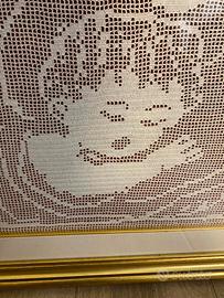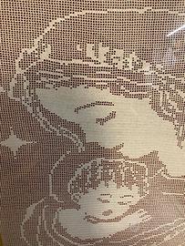 Quadro Madonna con bambino, lavorato all'uncinetto tecnica filet, anni '90, le misure sono le seguenti: