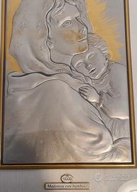 Quadro Madonna con bambino bassorilievo in argento 925 collezione ACCA. Misure esterne 35x45 interno 24x14, fine ed elegante.