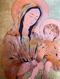 Quadro Madonna con bambino, intarsi metallo