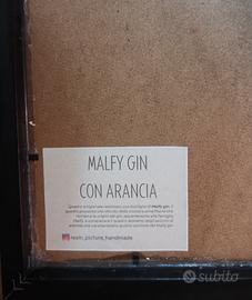 Bellissimo quadro artigianale con bottiglia di Malfy Gin in resina, decorato con fette di arancia essiccata. Un pezzo unico!