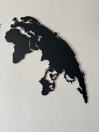 Bellissimo quadro decorativo a forma di mappa del mondo. - Design moderno e minimalista. - Colore nero. - Ideale per arredare qualsiasi ambiente.