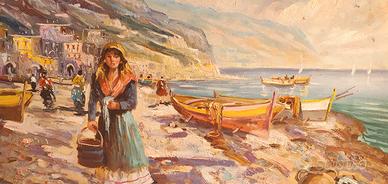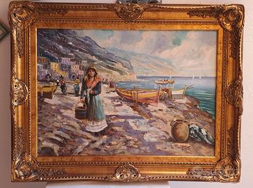 Svendesi quadro olio su tela "Marina ragazza in riva al mare " . L'opera raffigura una ragazza in riva al mare di Napoli. La cornice è in legno massello intagliato molto elegante in un ottime condizioni come pure la tela. Il prezzo richiesto è di puro realizzo perché io l'ho pagato molto di più. Infatti si vede benissimo che è un ottimo quadro ad olio che io svendo come altri pezzi per motivi personali. Le misure della tela sono: cm 69X49. Le misure della cornice sono: cm 88 X 68. Su richiesta posso inviare altre foto più dettagliate. Il prezzo è un po trattabile in rapporto alle spese di spedizione. Grazie