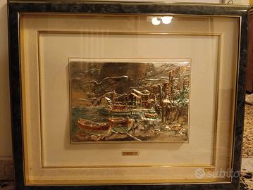 quadro in 3d metallico placcato in argento raffigurante un paesaggio marino, autore "Gigi"