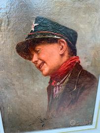 opera dipinto olio su tela riportata su tavola del pittore napoletano del ottocento cm 40 x 30 piu bella cornica in legno dorata cm 62 x 52 totali