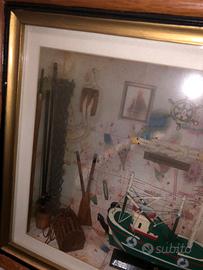 Salve, vendo quadro in legno con barca e attrezzature marinare navali