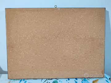 Quadro Artigianale con cornice in legno, con vetro, rifinito con angolari in ottone. Cornice interna rivestita con juta. Misure 78x55x3,5 Parte dietro del quadro rifinito con foglio di sughero. N. B. Unica cosa da segnare che si è staccata l'ancora e una parte della catena in ferro. Da ripristinare.