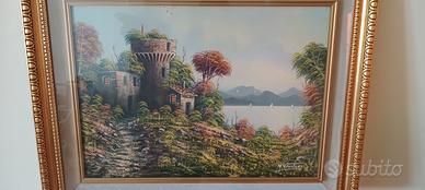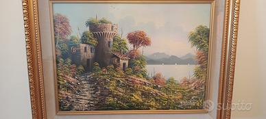 Quadro "Paesaggio" di Mario Santini, pittore paesaggista del '900. con certificato di autenticità e provenienza. olio su tela 50 x 70. cornice dorata inclusa. consegna di persona