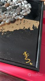 Materiali: Pietre naturali, foglia oro, resina, cornice nera.