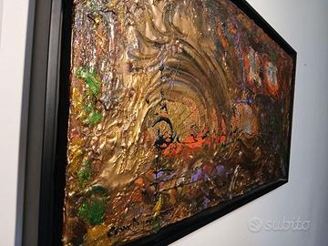 Tecnica: Mista materica con pigmenti metallici e rilievi.