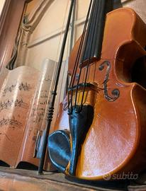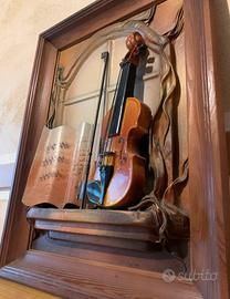 Raffigura un violino tridimensionale perfettamente integrato nella composizione, accompagnato da uno spartito musicale in rilievo.