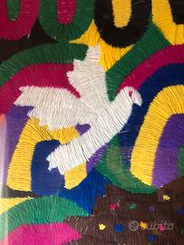 Condizioni: Ottime. L'opera è protetta da vetro e incorniciata, il che ha permesso di preservare perfettamente l'adesione della lana e la brillantezza dei colori originali.