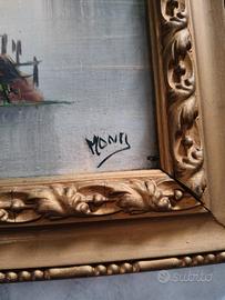 quadro di Monti pittura ad olio con cornice di legno dorata ottime condizioni 40x50