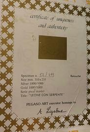 Vendo splendida opera a rilievo in argento/oro dal titolo “Leone con Serpente”, realizzata dalla casa editrice Pegaso Art come omaggio al grande maestro Antonio Ligabue.