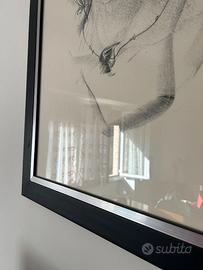 Quadro modernariato raffigurante elegante disegno minimal di uomo con collana. Larghezza: 66cm, altezza 89cm