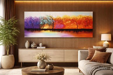 Splendido quadro moderno su tela di grandi dimensioni, ideale per arredare con stile e dare carattere a qualsiasi ambiente ✨ Il dipinto rappresenta un suggestivo paesaggio astratto con alberi, caratterizzato da colori caldi e intensi che sfumano dal viola all’arancione, creando un effetto visivo unico e rilassante. 📏 Dimensioni: 160 x 59 cm 🖼️ Tipologia: tela pittorica 🔧 Pronto da appendere 💡 Perfetto per: soggiorno sopra divano o mobile TV camera da letto uffici o studi professionali negozi, showroom o locali ✨ Grande formato scenografico Colori vivaci e moderni Dona profondità e calore all’ambiente Si abbina facilmente ad arredi contemporanei 🎯 Ideale per chi cerca un elemento d’arredo importante, capace di trasformare completamente la parete.