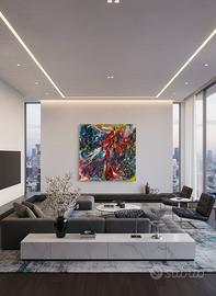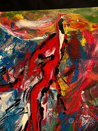 Importante dipinto contemporaneo di stile astratto-espressionista, realizzato su