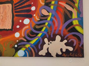 Quadro moderno astratto dipinto a mano su tela utilizzando colori ad olio (misura 70*50-titolo Inizio della scoperta-08.2007)