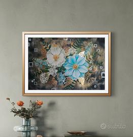 Quadro moderno con fiori, arte arredo con cornice