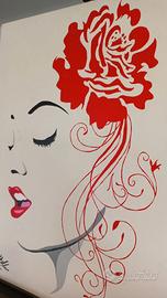 Quadro moderno dipinto a mano Opera unica Smalti lucidi su tela 50x70 Anno 2019. Corrado Belluomo "Fiore di donna"