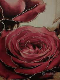 Quadro moderno fiori. vendo per cambio arredamento.cornice argento bellissima. dimensioni larghezza 135 cm altezza 74,5 cm . le rose hanno il perdili glitterato argento come in foto