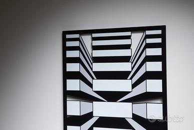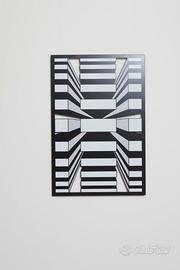 " Lineare, simmetrico e dal ritmo regolare, il soggetto rappresentato vuole trasmettere un senso di ordine e profondità che tende a conferire un senso di maggiore apertura di un ambiente, grazie anche al contrasto tra bianco e nero."