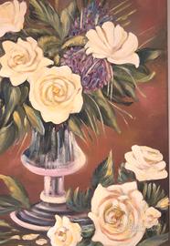 Quadro moderno riproduzione vaso di rose olio su tela dim 60x50cm